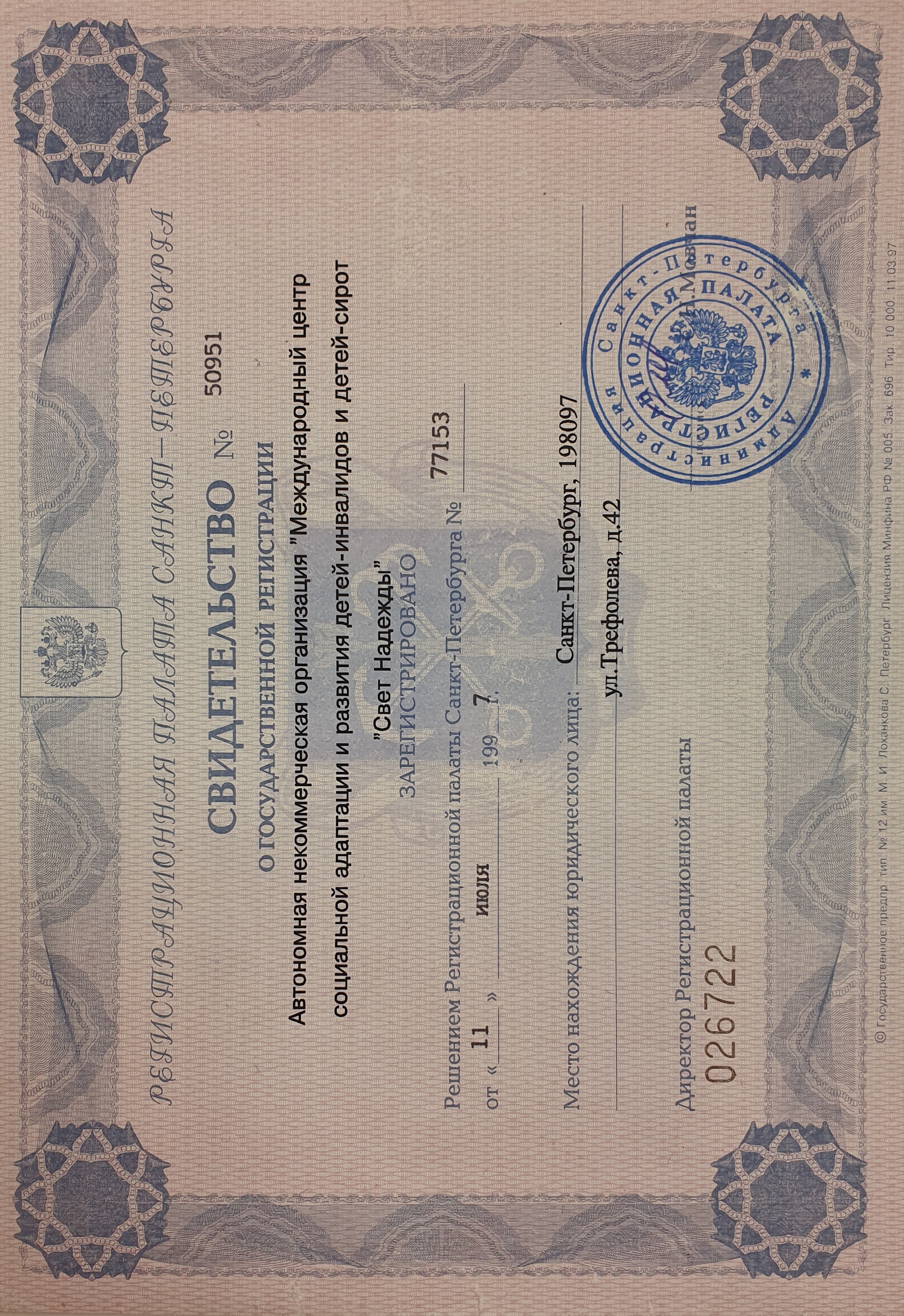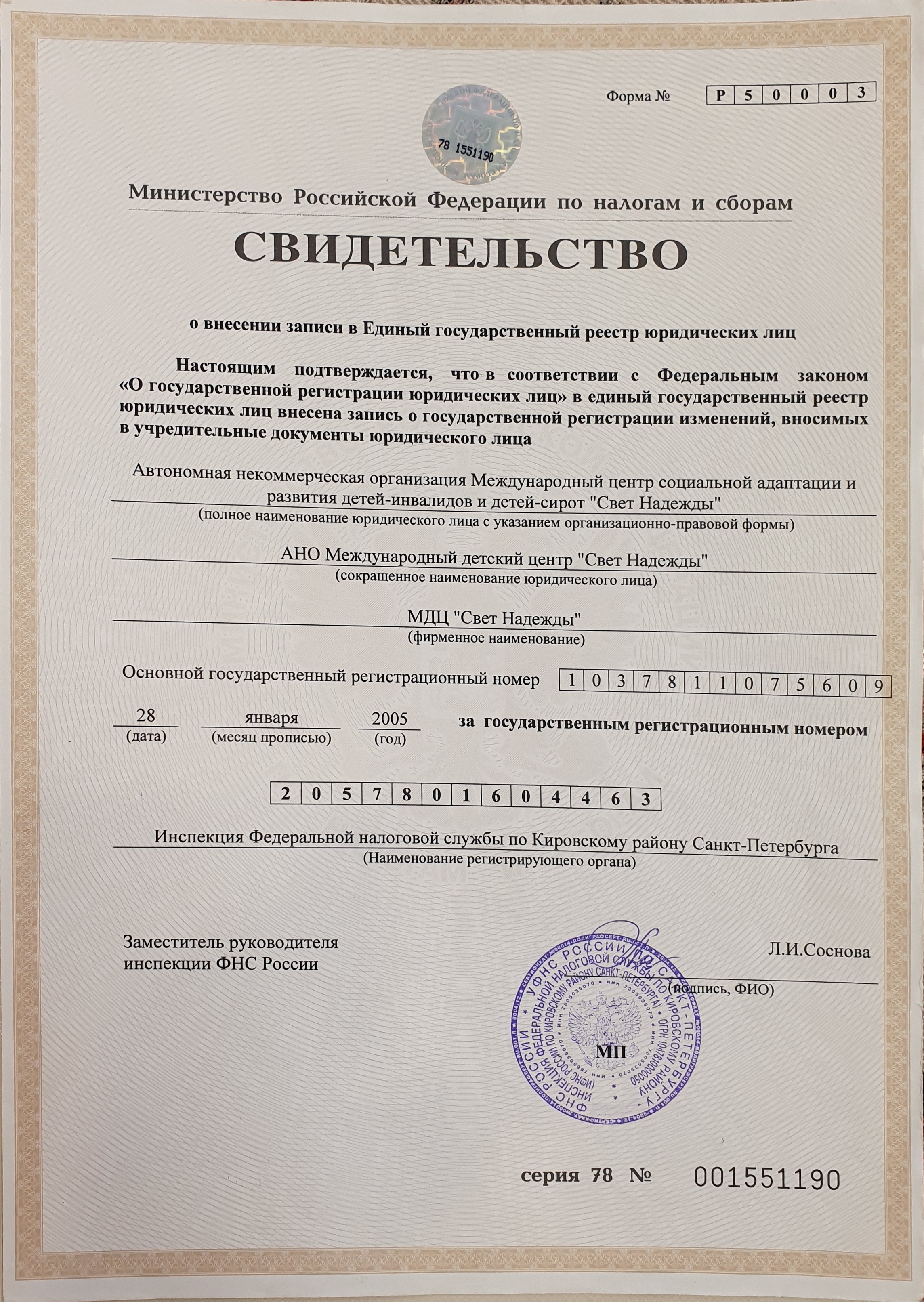 В этом разделе собраны основные официальные документы АНО МДЦ «Свет Надежды», которые подтверждают статус и деятельность организации.